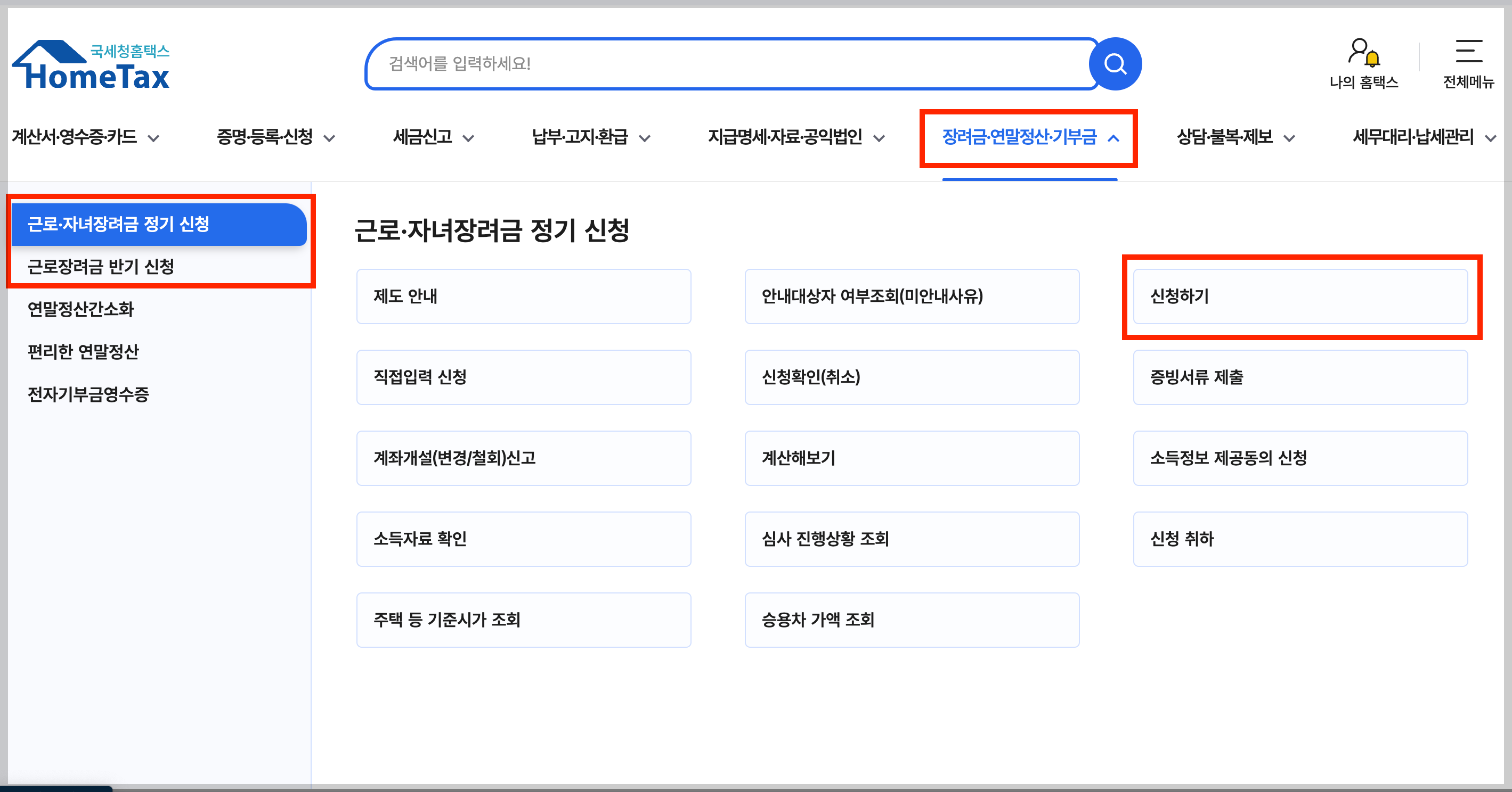 • 근로장려금 신청 메뉴에서 신청 가능.